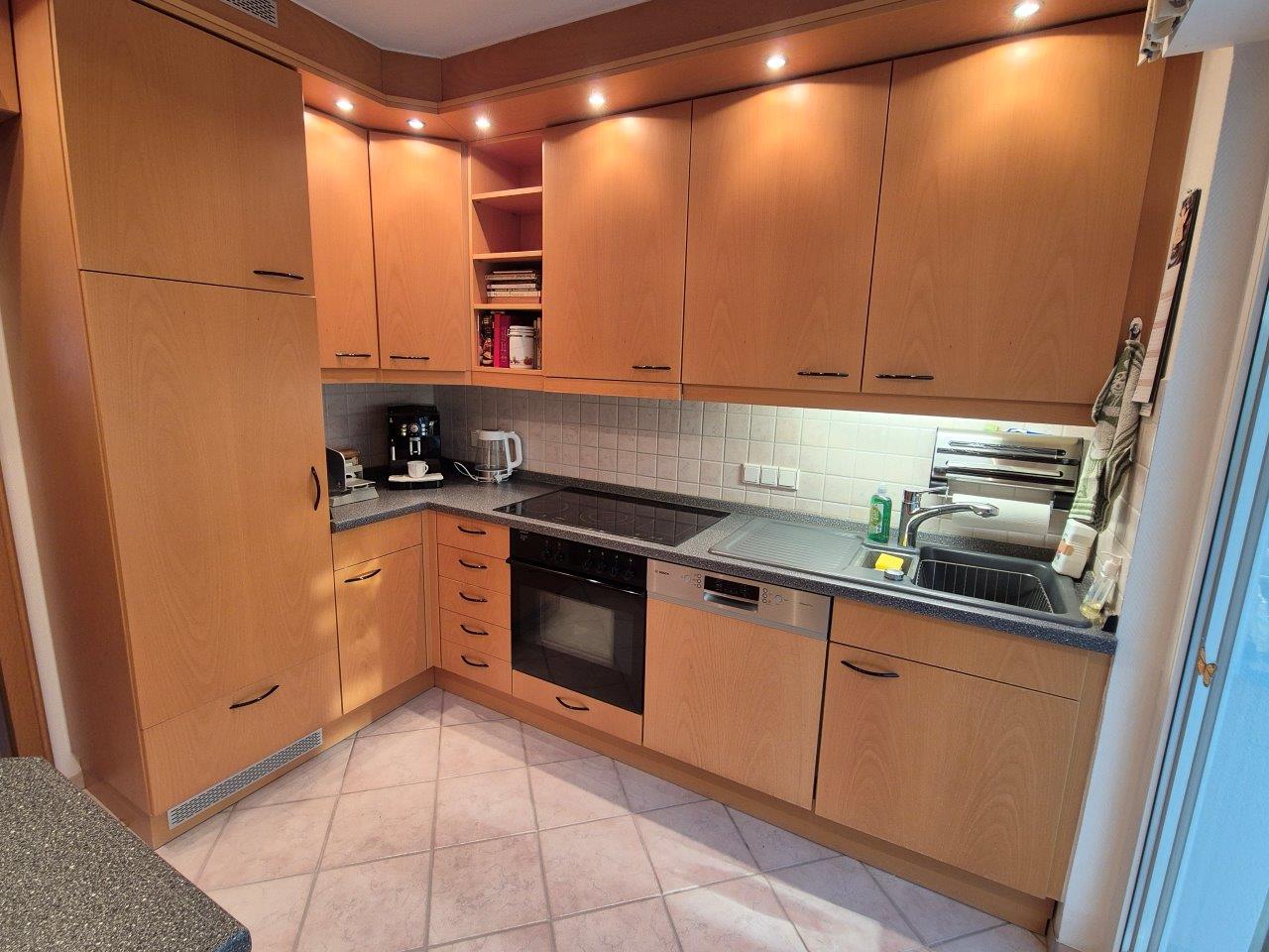 Wohn-Esszimmer mit Zugang zum beheiztem Wintergarten (Wfl. ca. 15 m², Grundfl. ca. 40 m²), Küche